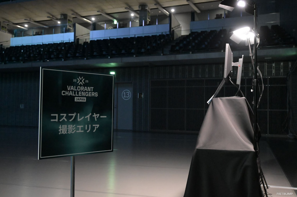 アリーナ内にはコスプレイヤー撮影エリアと、サイファーのアビリティ「スパイカメラ」が用意されていました。ライティングの用意もされていたため、会場を背にした写真映えも良好。このカメラの映像はインターバル中の画面にも表示され、多くの方が並んでいました。