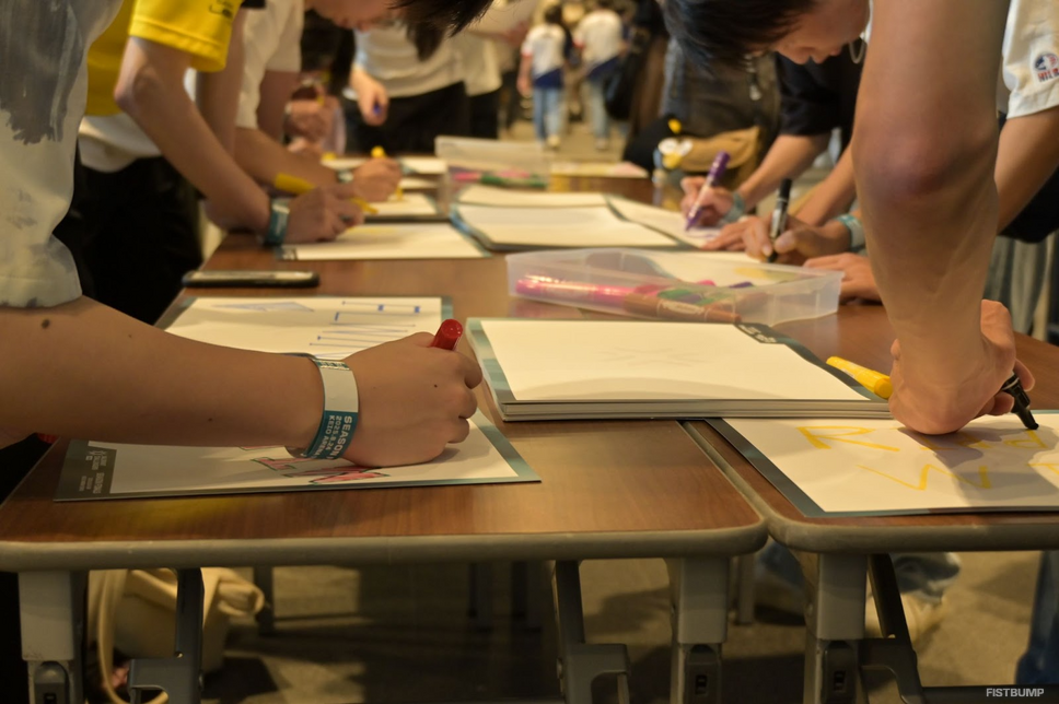 オフラインといえば、やはり応援ボードは欠かせません。来場者の方が思い思いの言葉をボードに記していました。中にはイラストを書き込む方や、ボード用の素材を持ち込んでいる方もいらっしゃいました。