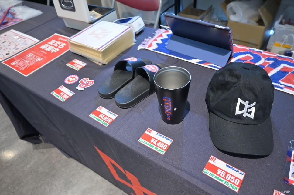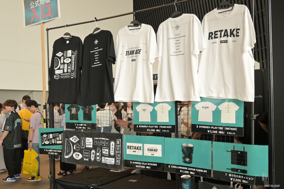 Challengers Japan 2025 Split2に引き続き、公式物販も行われており、レジ数が多く、スムーズに列が流れていました。2025シーズンは大会ごとにメインステージ出場チームのロゴが採用された新作グッズもあり、座席のクッションもありました。