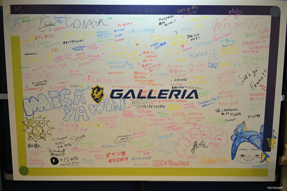 GALLERIAブースでは、GALLERIA PCを使用した試遊プレイと、アンケートに回答することでプレイヤーカードが1枚もらえるキャンペーンが行われていました。ブース横には寄せ書きのコーナーが設置され、来場されていた方が思い思いの言葉を残していました。