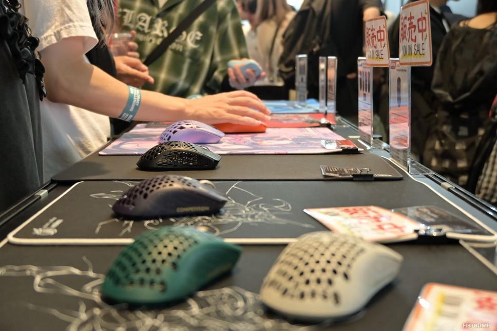 ふもっふのおみせブースでは、ゲーミングデバイスの展示と販売が行われていました。本大会で初展示となる製品や、MURASH GAMINGコラボのマウスパッドやキーキャップを搭載したキーボードの展示もあり、スタッフの方が来場者の方にデバイスについての説明をしている場面もありました。普段あまりゲーミングデバイスに触れないという方も、気軽に相談できる場が用意されていました。デバイスに興味がある方も、まだデバイスのことがよく分からないという方もは是非チェックしてみてください。