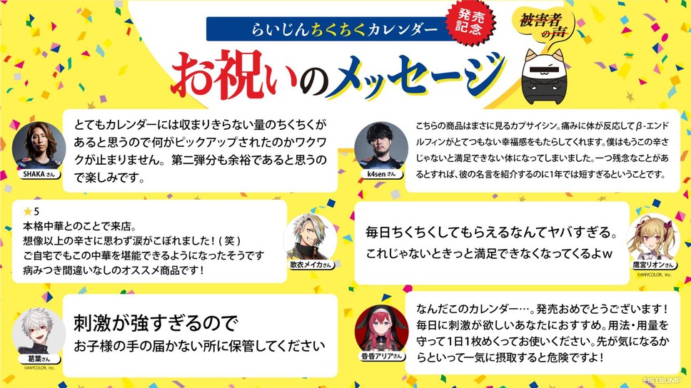 発売を記念したお祝いメッセージ(被害者の声?)では、SHAKAさんやk4senさんのほか、歌衣メイカさんや鷹宮リオンさんなど「LTK」シーズン1の旧「Domination Crown」メンバーもメッセージを送っており、「想像以上の辛さに涙がこぼれました」「これじゃないと満足できなくなってくる」といった自身の体験談を元にしたコメントを寄せています。