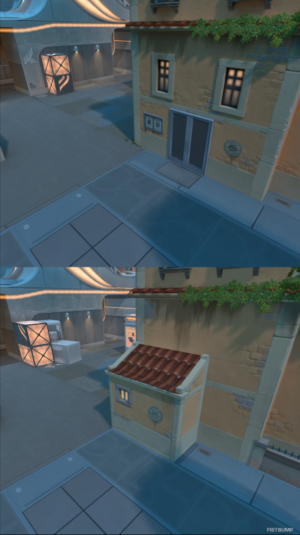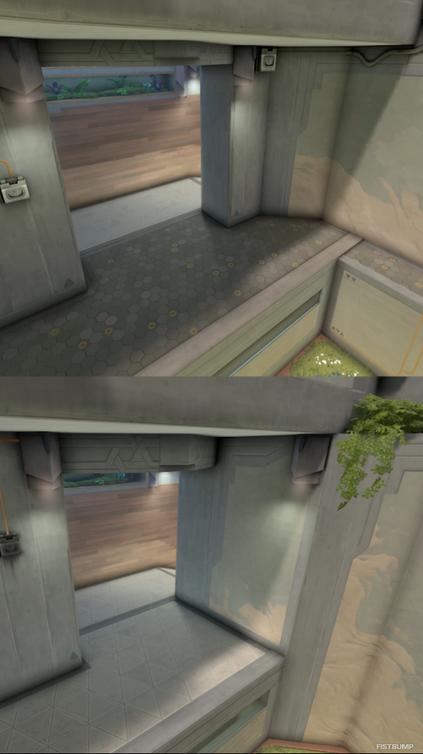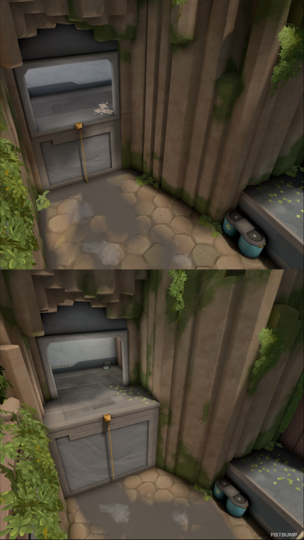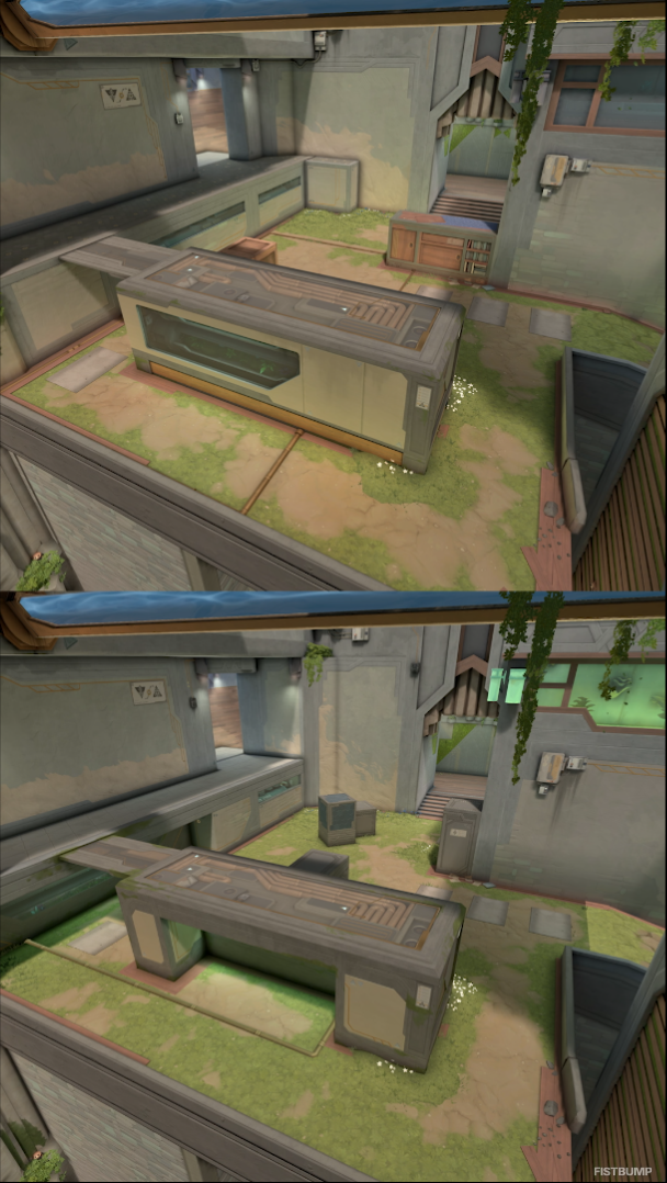 サイトの変更点 - 現在は両チームともにサイト内での戦闘に苦労しています。防衛側は初動でのサイト防衛が難しく、攻撃側はスパイク設置後のポジションを維持しづらい状況にあります。その結果、攻撃側はメイン側に設置せざるを得ない場面が多く見られます。今回の変更では、両チームがよりサイト内で戦いやすくなるようにし、メイン側でのスパイク設置後の戦いをより高リスクなものにしています。