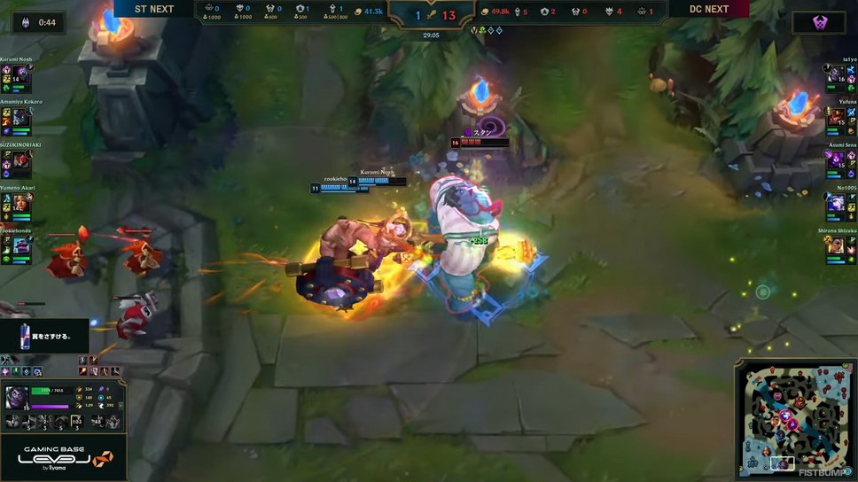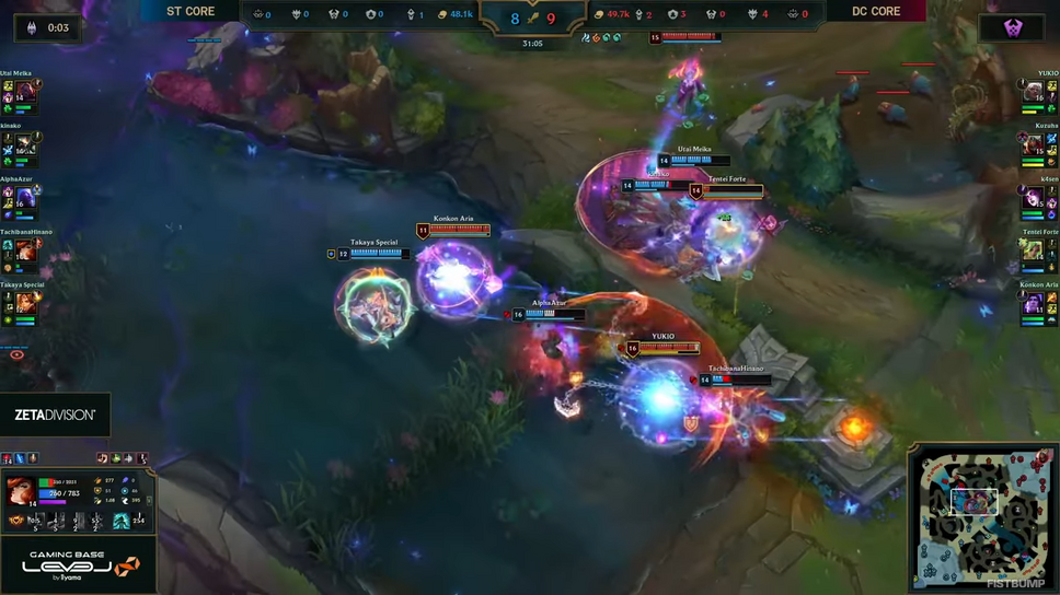 この試合でDC COREは、昏昏アリアさんのタリックとゆきおさんのアンベッサを組み合わせた“虚式「茈」構成”を採用。序盤から互いにキルトレードを繰り返すシーソーゲームとなりましたが、24分頃のMID集団戦を制してドラゴンソウルを獲得し、勝利を確定させました。