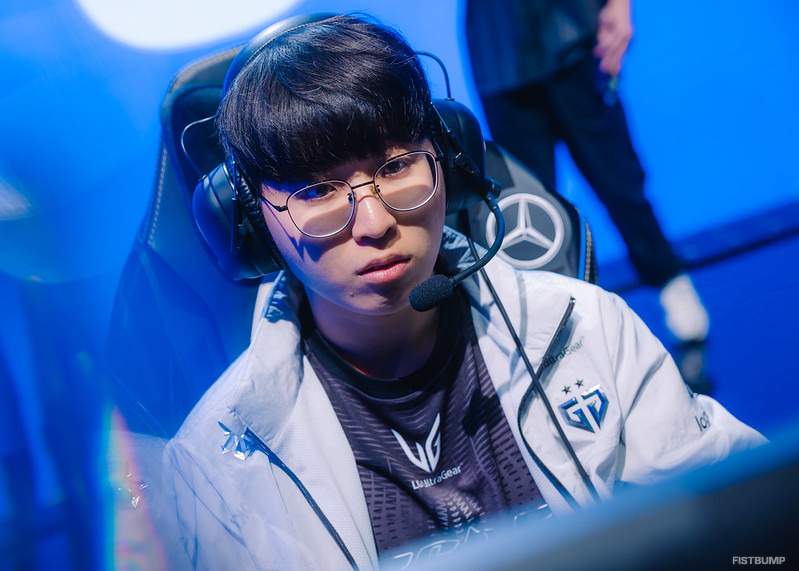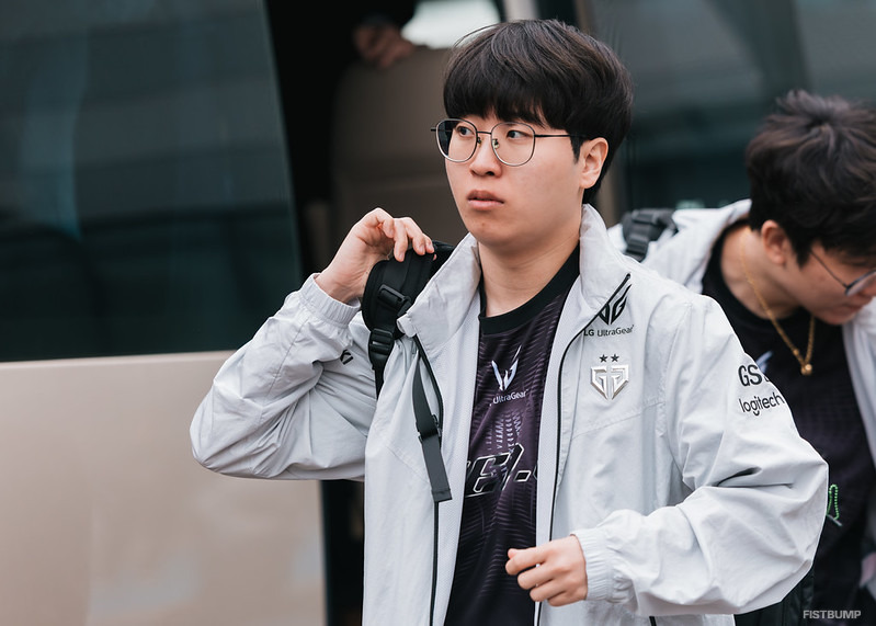 Bo1で行なわれたこの日の対戦。序中盤は、ほぼゴールドイーブンの展開でしたが、じわじわとGen.Gがリードを掴み始め、パワースパイクを迎えた後半には集団戦でT1に襲いかかります。そこから次々にキルを重ねて力をつけていき、最終的にネクサスを破壊。これによりGen.Gはライバル・T1を下してスイスステージの勝敗数を2-1としました。