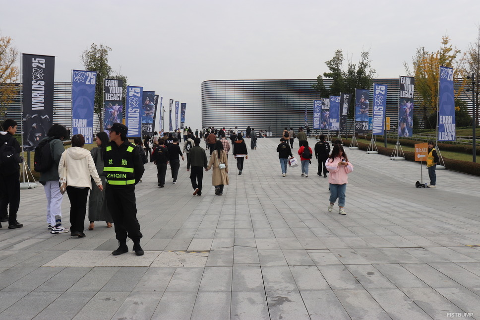 続いてファイナル当日の会場の様子をお伝えします。こちらは成都の郊外にある「東安湖体育公園多功能体育館」という会場です。まわりはのどかな公園が広がっており、「LoL Carnival」会場付近とは打って変わってゆったりした雰囲気です。