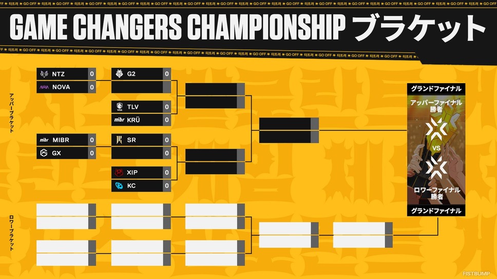 トーナメントはダブルエリミネーション形式で行われ、最初のラウンドはBO3形式で戦われます。国際大会ならではの多様な組み合わせを実現するため、同じ地域のチーム同士はブラケットの逆側に配置されます。ロワーブラケットファイナルとBO5形式のグランドファイナルです。