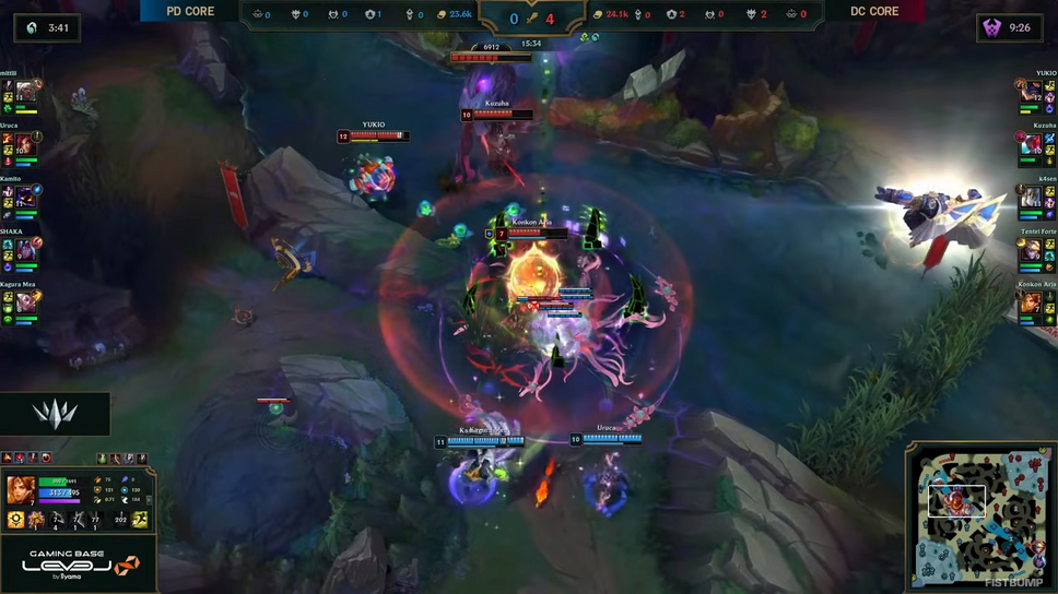 出だしの悪いスタートとなりましたが、その後Day2、Day3と破竹の勢いで勝利し、5連勝でプレイオフステージ進出を決定付けました。やはりDC COREで印象的なのは、コーチのEugeoさんから繰り出されるk4senさんの豊富なチャンピオンピック。セラフィーン(歌ガリオ)、サイオン(黒ガリオ)、ガリオなど集団戦のきっかけを作りやすいCCを持つチャンピオンで、オブジェクトファイトなどを有利に進めるシーンがレギュラーステージでも目立ちました。