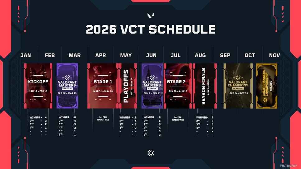 2026年のVCTは、Tier 2シーンの強豪チームがシーズン後半にTier 1の脅威となる可能性を秘めた、オープンなシステムとなります。Mastersサンティアゴ、Mastersロンドンを経て、最終決戦の地「Champions上海」に立つのはどのチームになるのか。1月のKickoffから目が離せません。