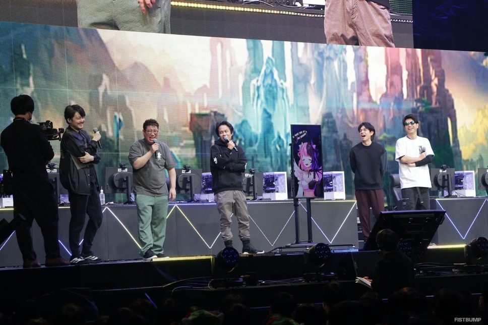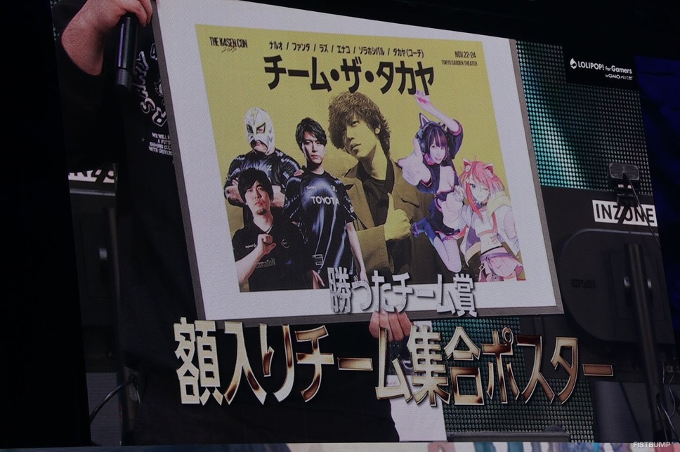続けて「チーム・ザ・タカヤ」のファン太さん、Lazさん、えなこさん、宙星ぱるさん、なるおさん、コーチのたかやスペシャルさんが登場。なるおさんが赤い鉢巻を目に巻いてリアル「リー・シン」の姿で登場したほか、えなこさんがアーリの美しすぎるコスプレを披露するなど会場内のテンションは瞬く間に爆発しました。「え、えなこりんがそこにいるぅー!」という声が聞こえてくるよう。いや、実際に聞こえてきました。