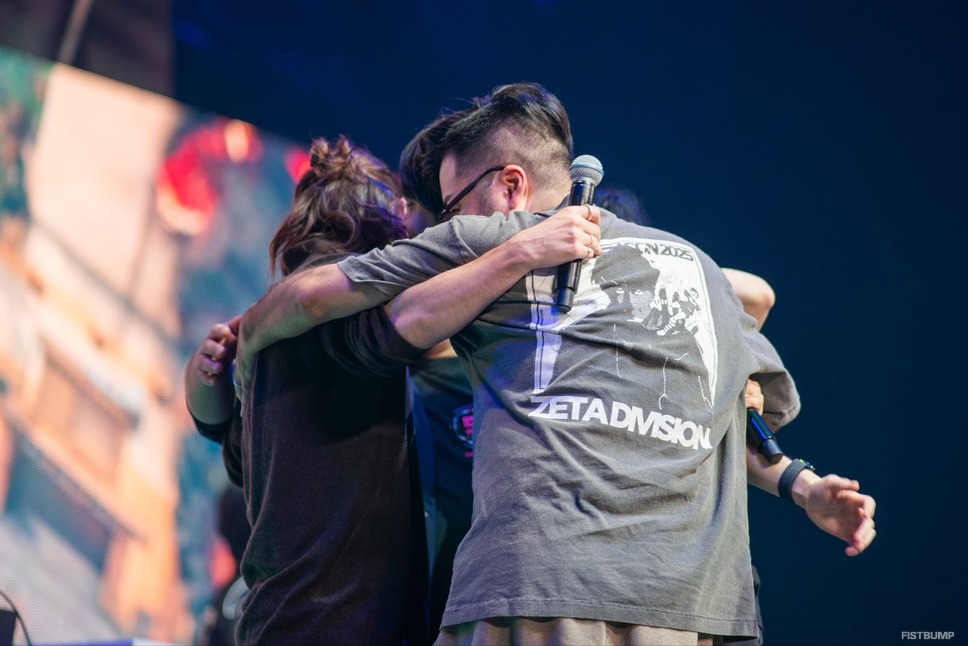 試合は、接戦の勝負を繰り返すなか「Team The SHAKA」が2-1とリードを取るも、会場の貸し時間による都合で急遽BO1に変更。築いた優位が消えた「Team The SHAKA」ですが、最後の勝負は全レーンでの主導権、重要オブジェクトに絡む集団戦の連携などで「Team The k4sen」を上回り、勝利を収めました。
