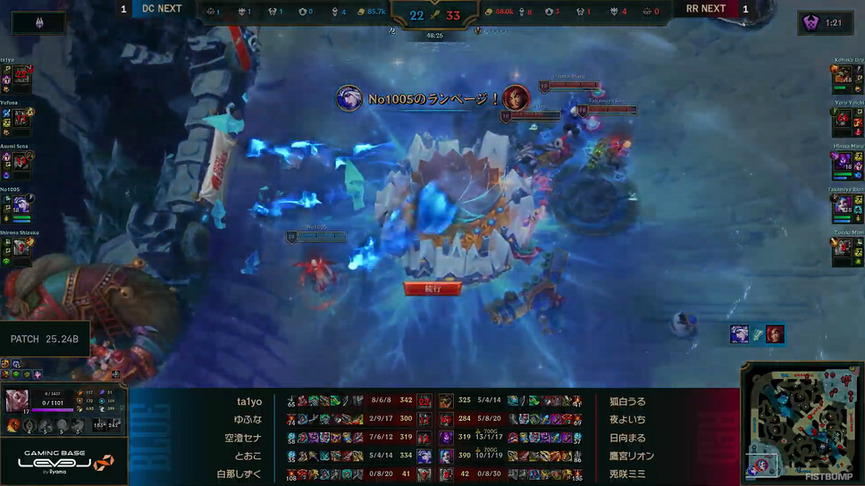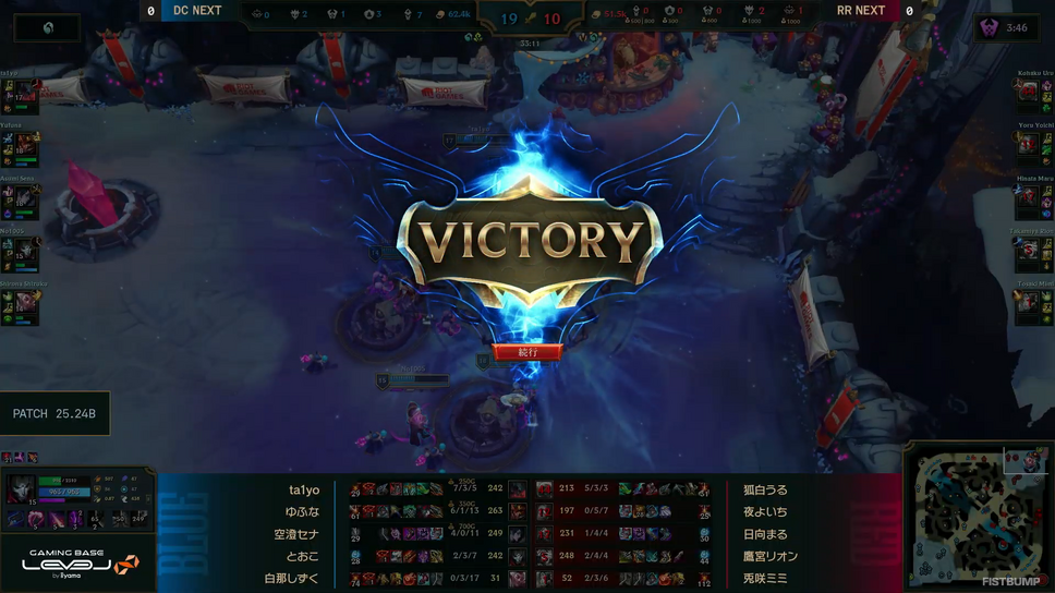 運命の3戦目、最後までどちらが勝つかわからないロングゲームでしたが、ついにRR NEXTがDC NEXTの牙城を崩し、勝利を掴み取りました。結果、RRが2-1でアッパーファイナルを制し、グランドファイナルに駒を進めました。