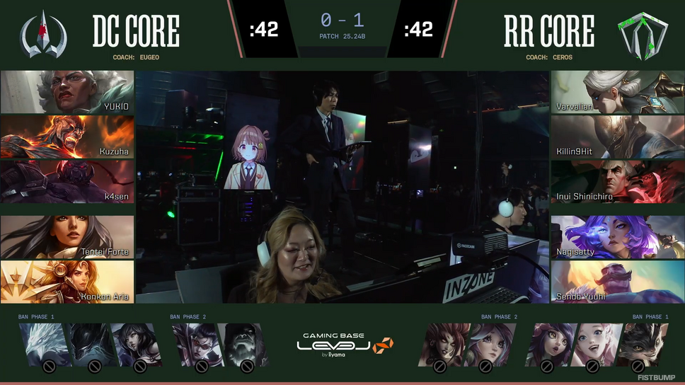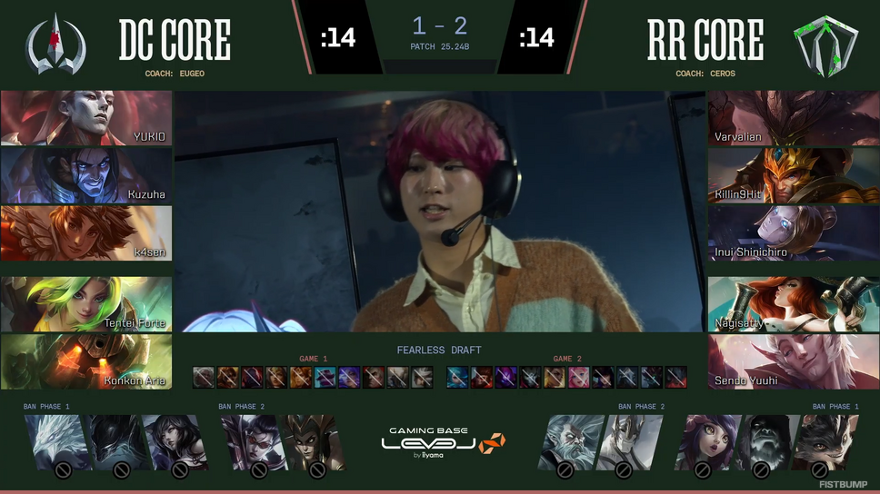 COREではフィアレスドラフトの採用により計30体ものチャンピオンがBANされる中、ADCは天帝フォルテさんのゼリvsなぎさっちさんのミス・フォーチュンと、お互いにシグネチャーピックも飛び出すドラフトに。