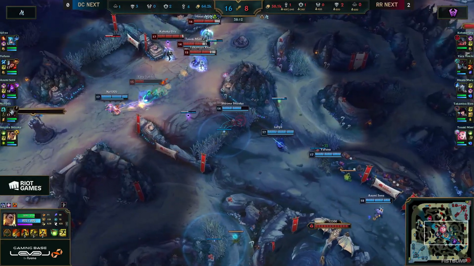 DCはTOPのta1yoさんが献身的にオブジェクトへと寄る一方、RRの狐白うるさんはレーンを重視したことで大きくファーム差が開き、LTKでは何度も大暴れしている“ワールドエンダー”エイトロックスに期待がかかりました。しかし、DCは集団戦になるとエイトロックスを徹底的にCCでマークし仕事をさせず、逆に前がかりになった相手を翻弄する華麗な集団戦を披露し、鮮やかな戦いぶりでネクサス破壊へと繋ぎました。