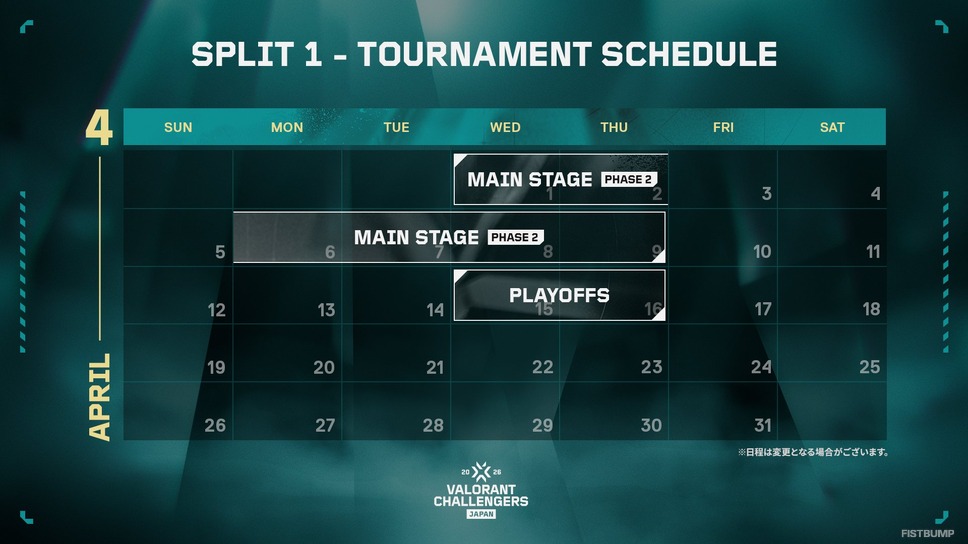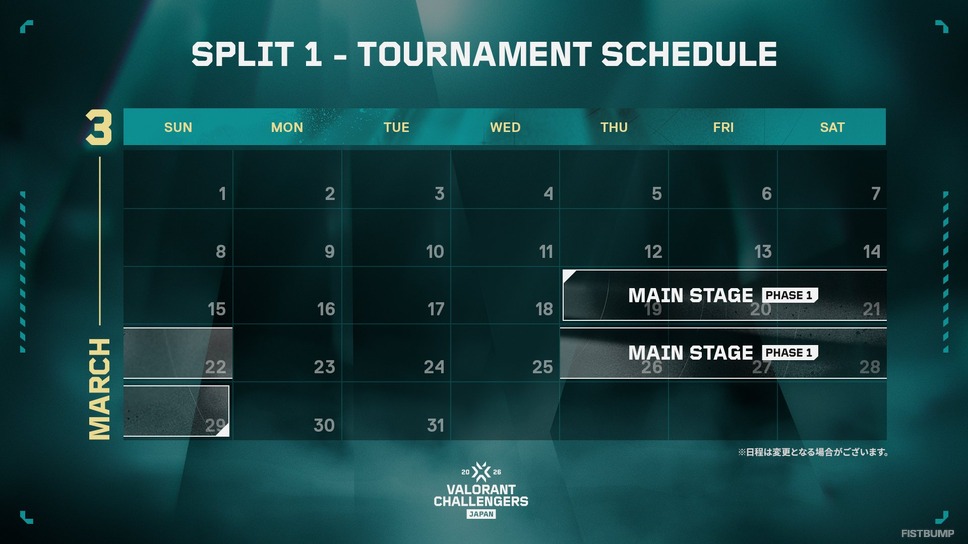 Riot Gamesは、3月19日に開幕する「Challengers Japan 2026 Split 1」の大会日程を公開しました。