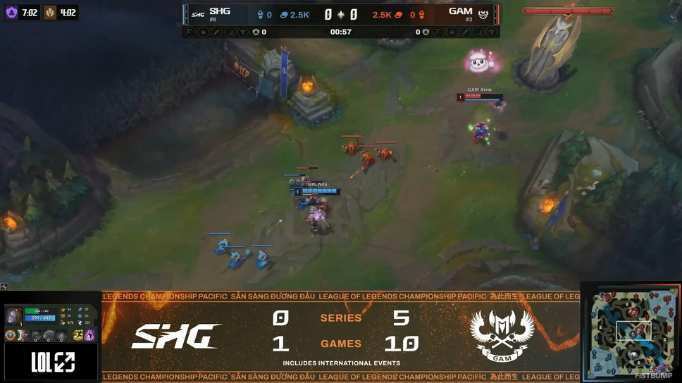 LCPのプレイオフは全試合BO5で行われる「Round2以降ダブルエリミネーション」の変則トーナメントとなっており、この試合は負ければSplit1から脱落となる重要な一戦。直近では2月5日に対戦し、2-0でGAMが勝利しているマッチアップであり、SHGは早速リベンジのチャンスが巡ってきた格好となりました。