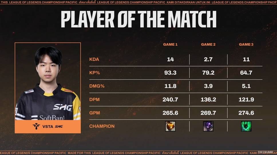 長きに渡ってベトナム勢の雄として君臨してきたGAMは日本勢との対戦を得意としており、これまでSHGも10戦1勝と相性の悪い相手ではありましたが、そのイメージを払拭するかのような劇的な勝利に。Player of The Matchには3試合通じてハイパフォーマンスを見せたVsta選手が選出されましたが、日本語公式放送で解説を務めたeyesさんも「誰が選ばれても納得」と表現するほどチーム全員がそれぞれの役割を果たした好ゲームで、今後に向けても弾みのつく内容となりました。
