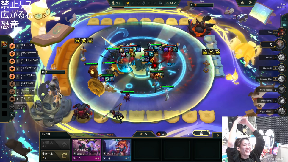 最終戦となる7試合目では、星3ミス・フォーチュンと星3ヘラルドを構成に加えた強敵のBijuさんに対して、ゆきおさんが5コストのジリアンを星3まで重ねる珍しいプレイングで逆転に成功し、1位を獲得。最後まで勝敗が分からない展開となりましたが、白那しずくさんが2位、空澄セナさんが3位という上位の成績を残したことで「わかんの3姉妹とわかんないのお父さん」チームの優勝が確定となり、本大会を制する形となりました。優勝を成し遂げた三姉妹チームの各メンバーには、ミシックまでの好きなリトルレジェンド、好きなブームポータル、5000RPが贈られました。