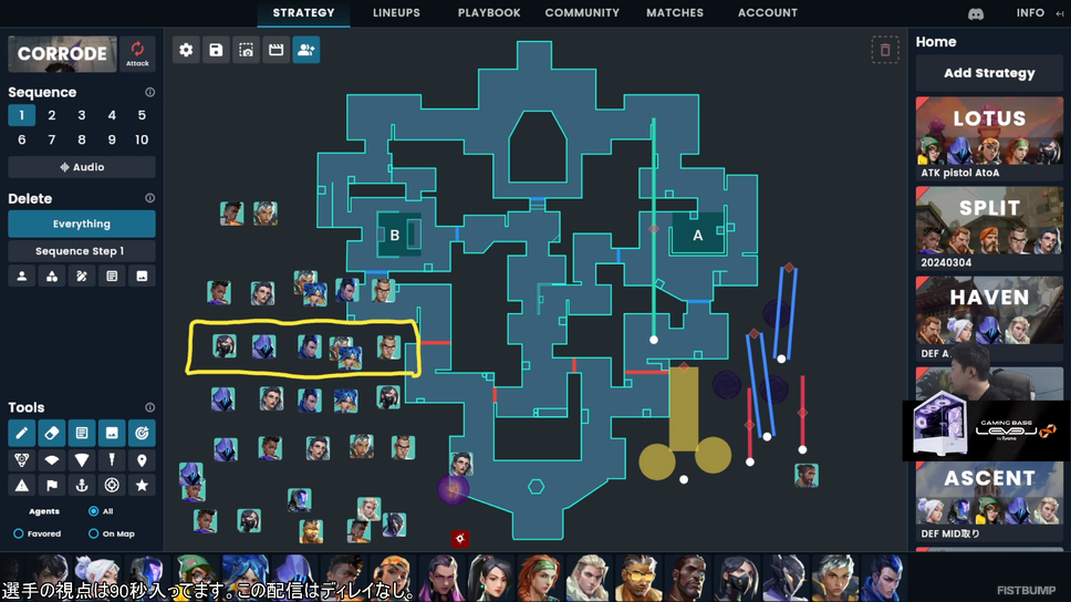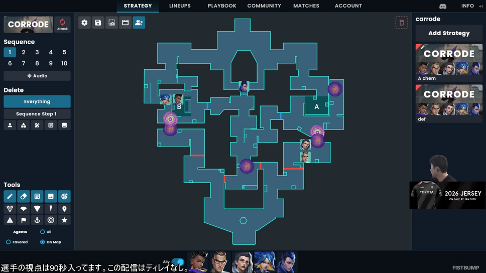 ヴァイパーとオーメン推しのJUNiORコーチ案で決定しそうになりますが、なぜか直前で練度を問題にチェンバー構成に変更。Lazさんはカロードならチェンバーよりヴァイパーのほうが練度があることを伝えますが、それでも他のマップでもお馴染みのアストラ・フェイド・ヨル・ネオン・チェンバーの構成でとりあえず進めることに。またもやディフェンダーが大変そうな構成になりました。