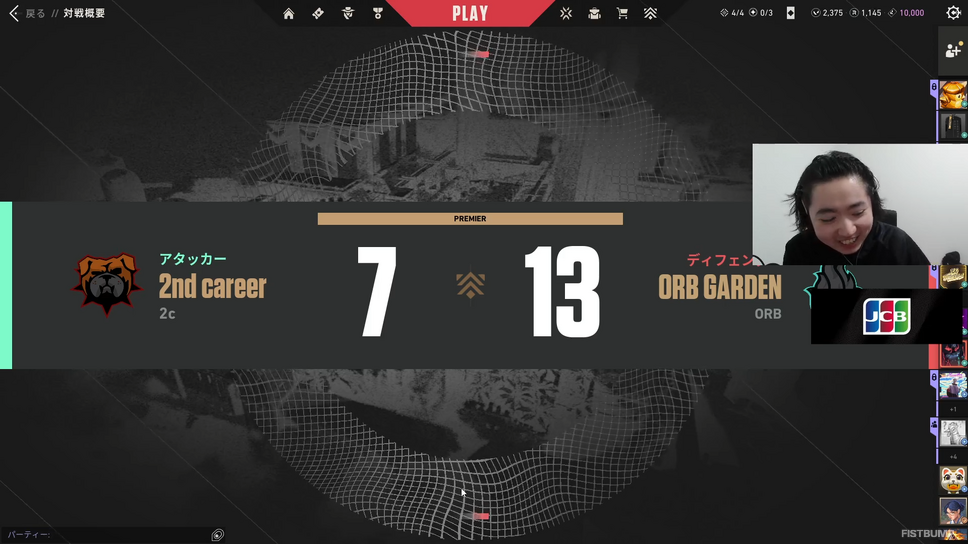 3月1日、『VALORANT』のゲーム内トーナメント「Premier」V26 Act 1の最後を飾るプレイオフが開催されました。コンテンダーディビジョンを勝ち進んだ「2ND CAREER」は、準決勝まで進出したものの、ORB GARDENを前に惜敗し、ベスト4でプレイオフを終えました。