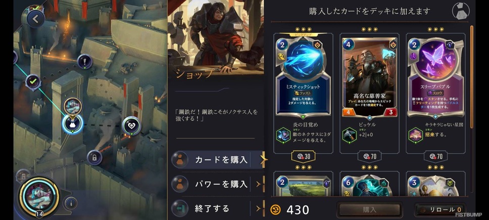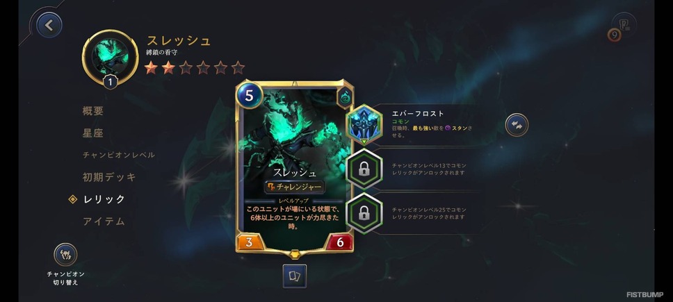 ボス攻略後にはチャンピオンに経験値が入り、チャンピオンが装備できる強力なレリックの装備枠が増えたり、フォロワーのカードのステータスを増強したりできます。