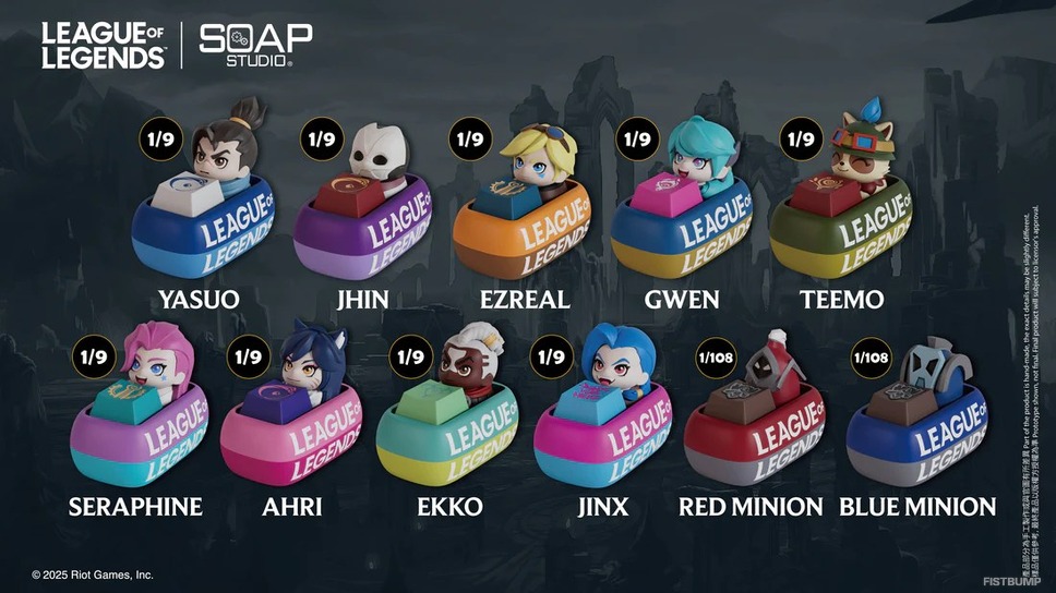 リーグ・オブ・レジェンド キーキャップ ブラインドボックス本商品は、香港のデザインスタジオ「SOAP STUDIO」と『リーグ・オブ・レジェンド(LoL)』のコラボレーションアイテムです。