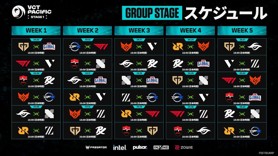 「VCT Pacific Stage 1」は4月3日に開幕し、5月17日にフィナーレを迎えます。試合開始時間は日本時間の17:00を予定しています。