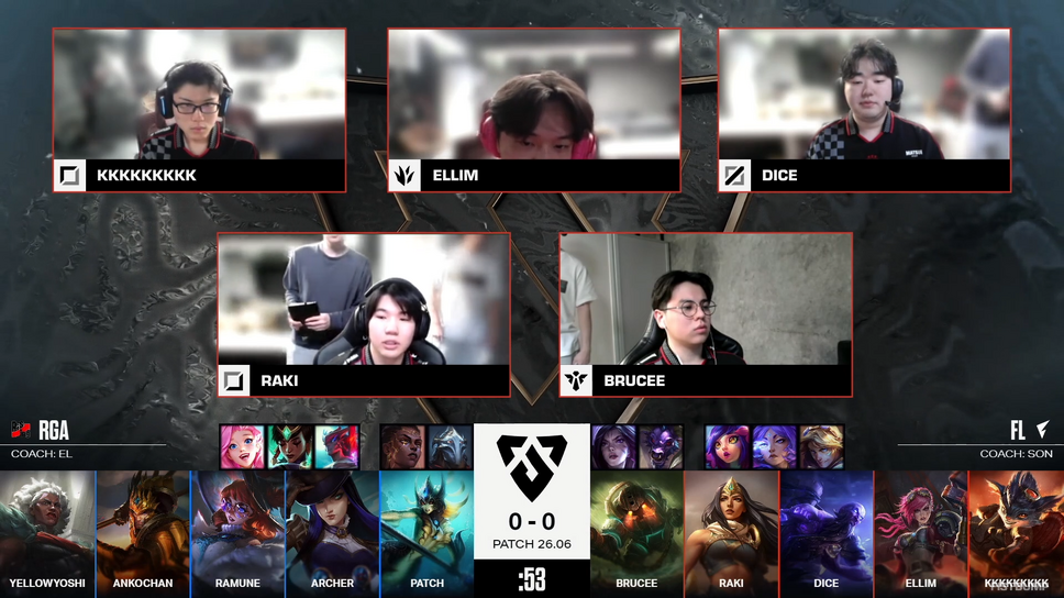 対するRGAはリーグ戦時代のLJLを経験しているベテランプレイヤーが中心となっている、今年初参戦ながら経験豊富なチーム。JGにアカデミー出身の日本人プレイヤーAnkochan選手を据え、コーチにはこちらもLJL選手だった韓国人JGのEL氏が就任し、オープン予選2位通過から決勝へと駒を進めてきました。