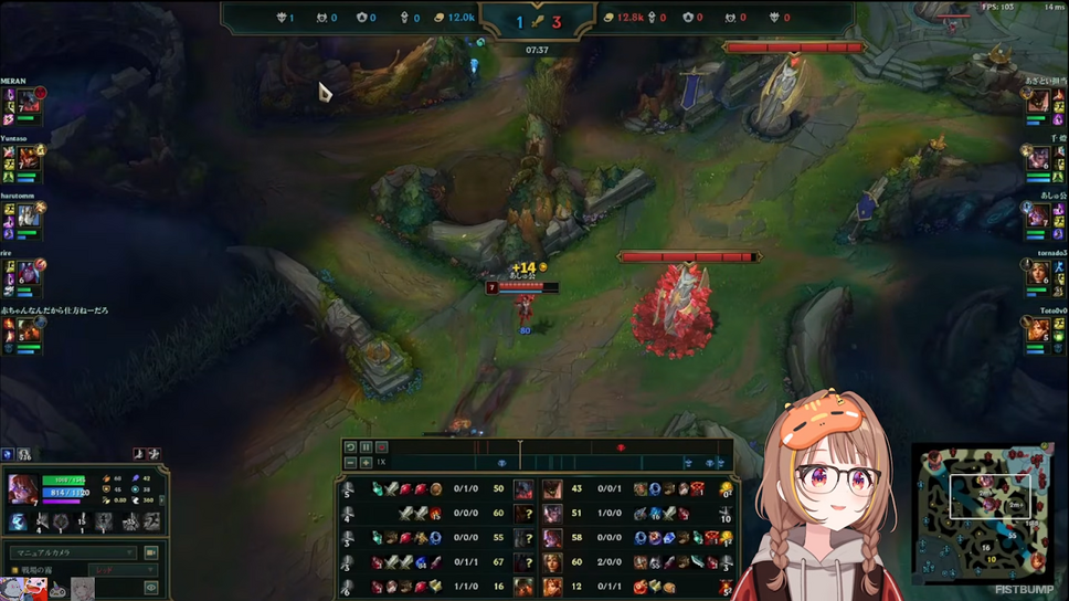 千燈ゆうひ:(そのアドバイスが)結構早めの段階だったのも良かったかもしれないですね。『LoL』って画面の情報量があまりにも多すぎますし、今回は特に全員が同じレートで戦っている訳ではないので、情報の取捨選択が難しいのも当然だと思うんです。