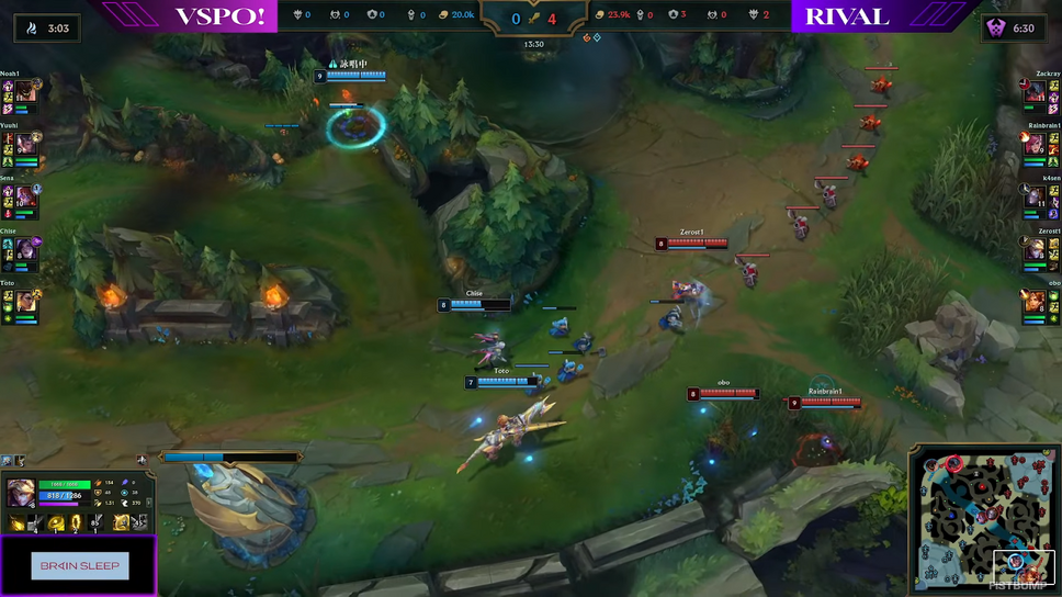 ――印象的だったのがGame1で千燈さんはBOTへのダイブをケアしてトライブッシュに、そしてRainbrainさんもそれに備えてレーンブッシュにそれぞれ待機していたシーンです。お互いに姿は出さずにかなりの時間を費やしていて、まるで“達人の間合い”のようですごく面白い試合でした。