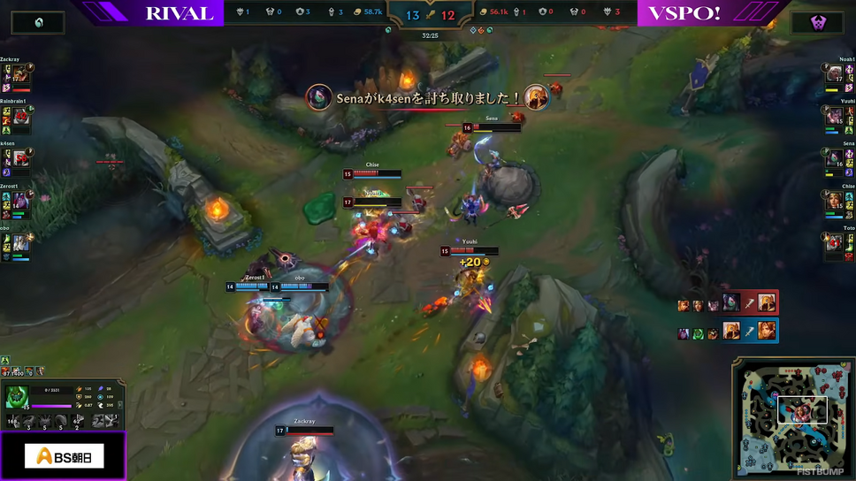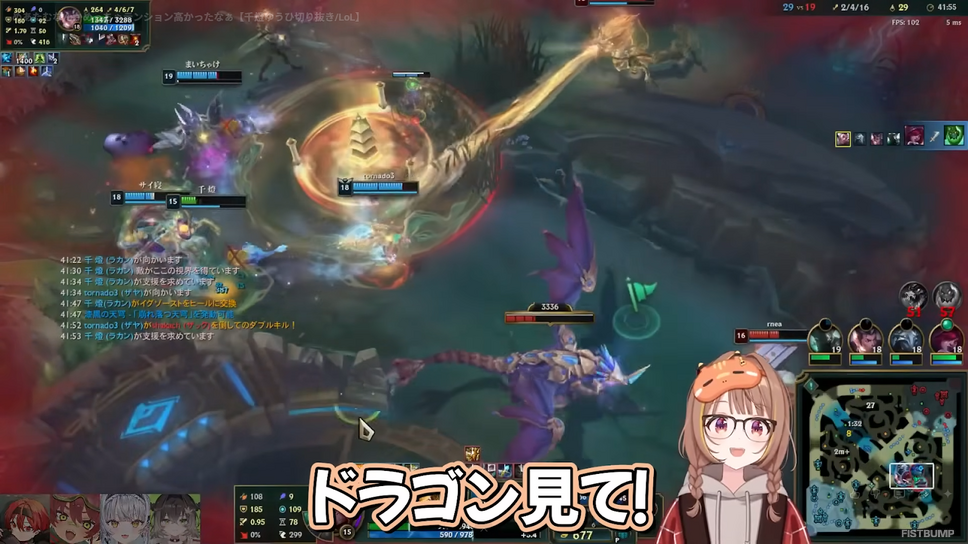千燈ゆうひ:そう、困っちゃいます。実はひとつ見て欲しいポイントがあって、MIDで先にプッシュしたレーナーがリバーへと体を隠すじゃないですか。そうなったら相手側はちゃんと他のレーナーがスッと下がるので、すごく(チーム全体が)連動しているのを感じられて面白いんです。ぜひ注目してみてください。