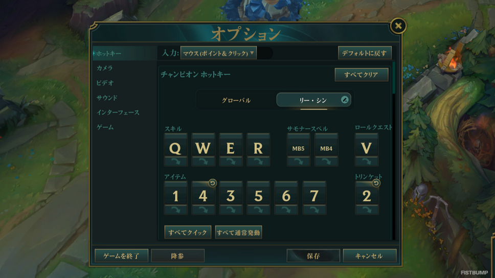 他にもちょっとユニークな設定では、リー・シンのみ「トリンケット」を「2」に設定すれば、Wと「2」を同時に押すことで「ワードジャンプ」を即座に発動できるというテクニックも。こちらも逐一変更しなくても良くなったので、検討の余地が増えたと言えるかも知れません。