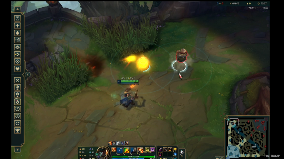 また、シンドラのQ→E、ジェイスのQ→E、アカリのR→Eのような素早い操作で繰り出すコンボもクイックキャスト向きで、ガングプランクのEコンボにもうひとつ繋げる「3連樽」はクイックキャスト限定の操作です。