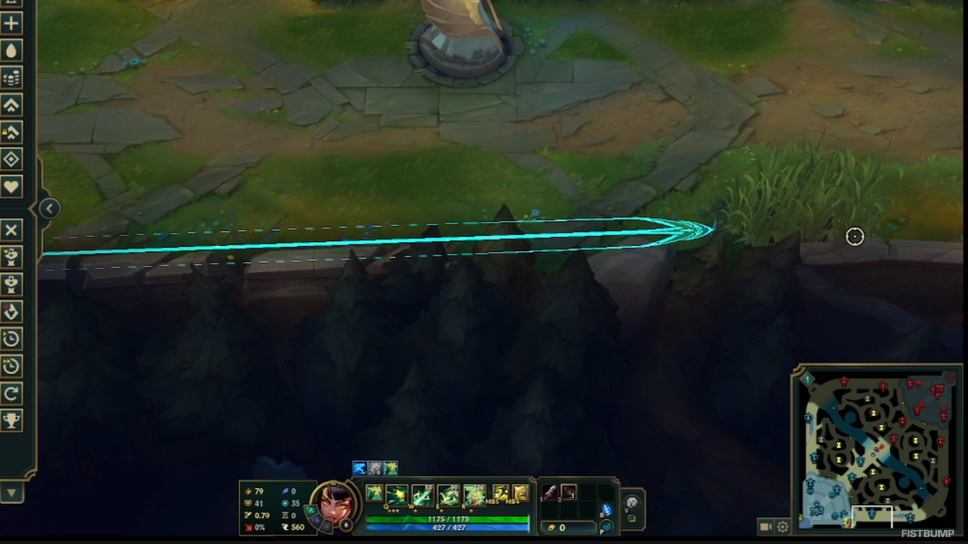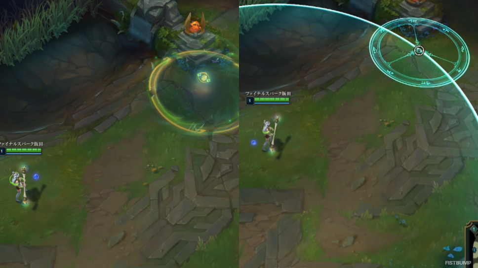 おすすめはジンのW、ラックスのRのような長射程スキルでの活用。画面外に狙いを付ける際に「一度押してみる」ことで射程が把握しやすく、味方のCCに合わせて構えておくのも◎。